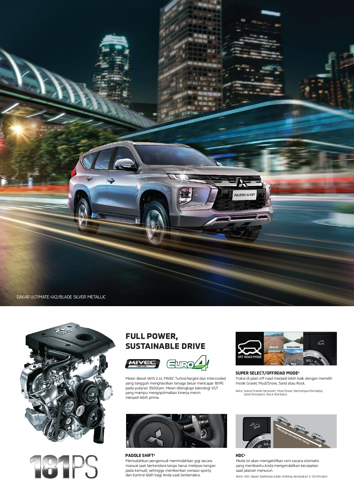 Memiliki Pajero Sport adalah pernyataan tentang kesuksesan dan gaya hidup. Anda berinvestasi pada kendaraan yang menjamin tidak hanya mobilitas, tetapi juga nilai: